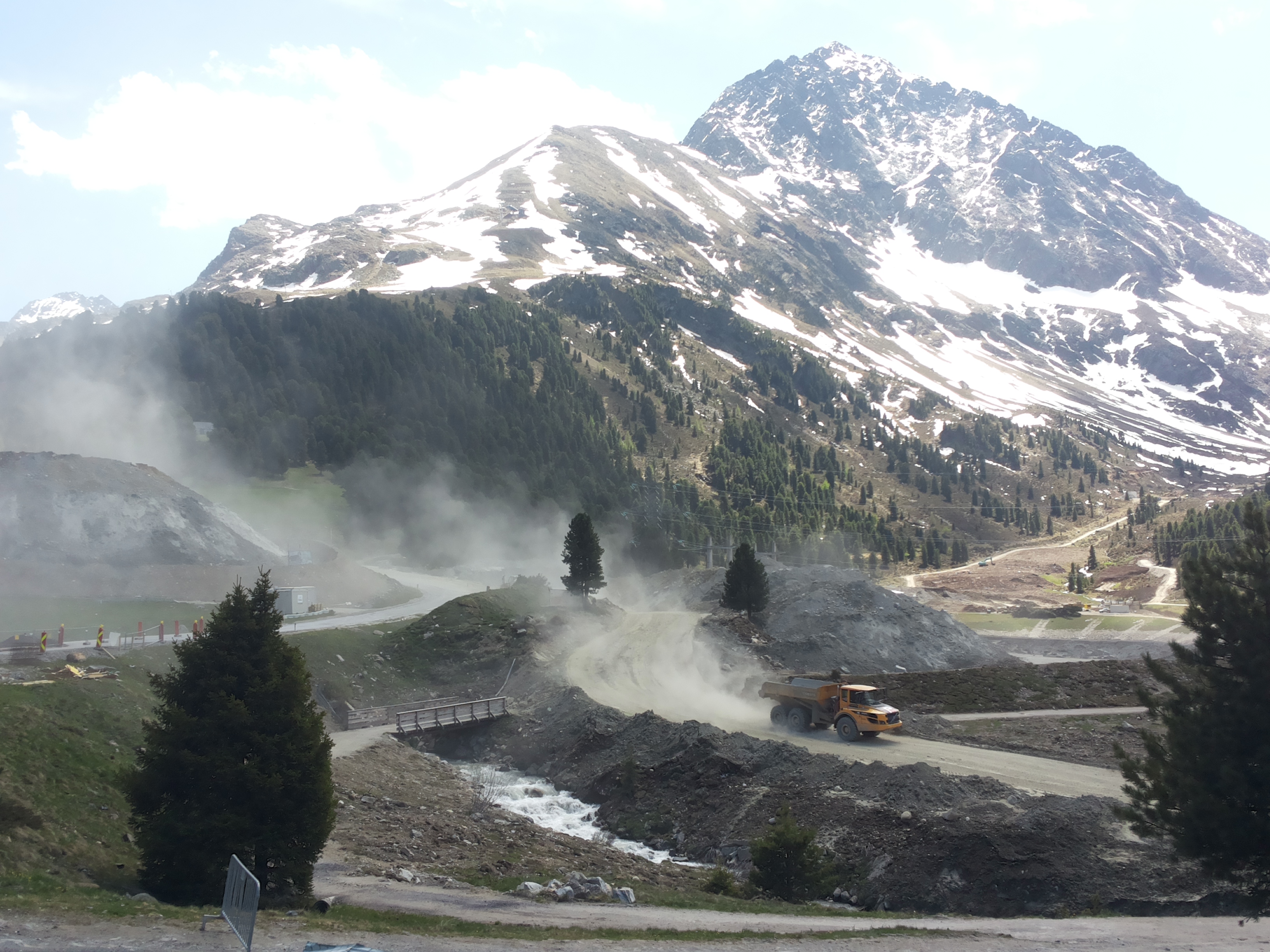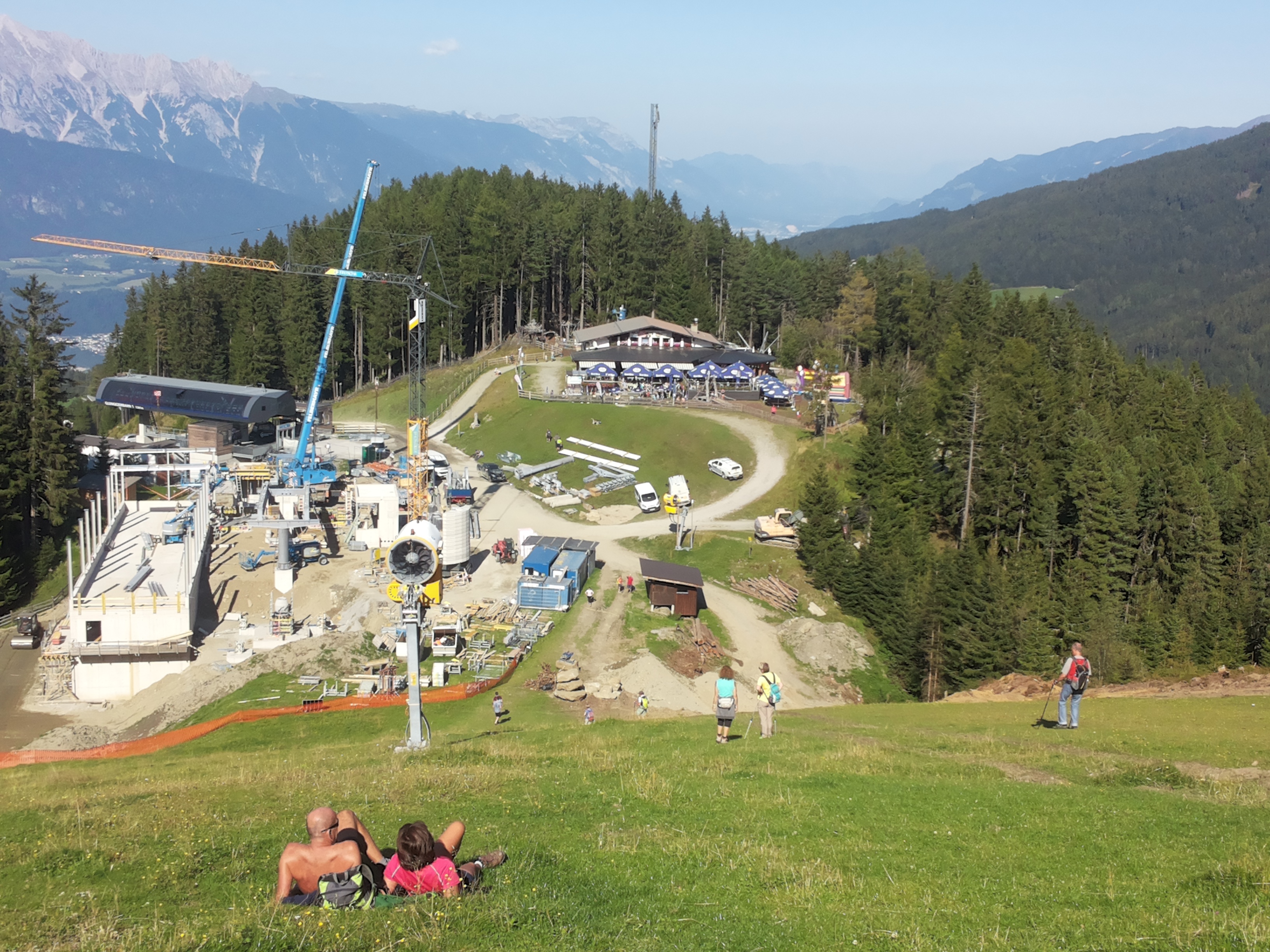 Auch den Inn abwärts herrscht geschäftiger Baubetrieb, z.B. in Tulfes am Glungezer, wo der obere Seilbahn-Abschnitt erneuert wird.