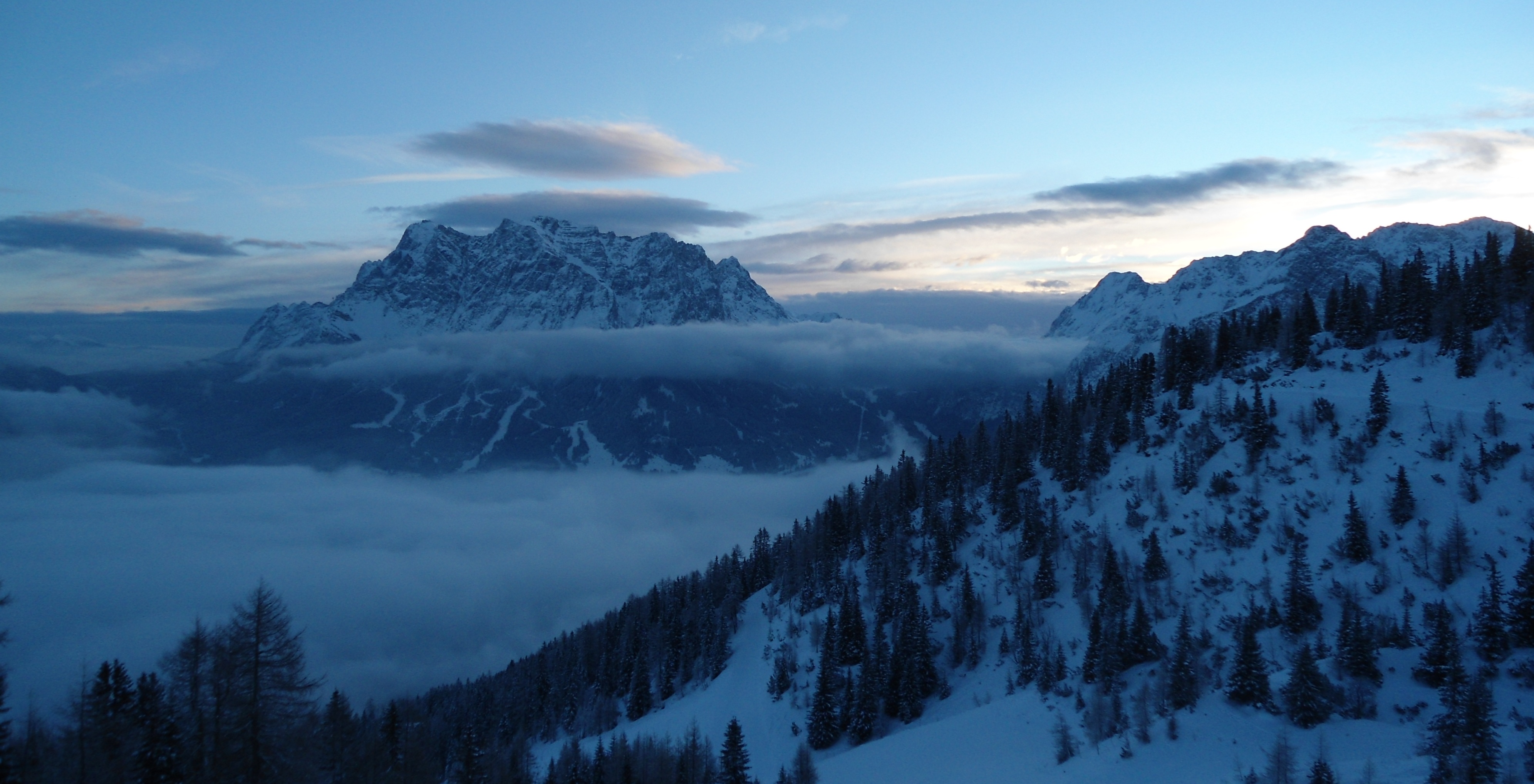 Dear Friends! Hier meine vorerst letzten beiden Fotos von der Zugspitze (da ich, wie einige von euch sicher schon wissen, nicht mehr in der Region weile). Das eine morgens, das zweite mittags. Schön mit Heiligenschein/Ufo 😉